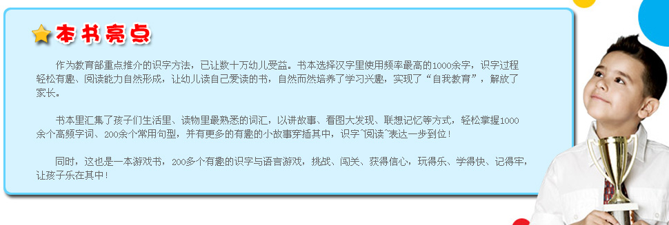 订购5套以上赠送识字积木:积木共55块!51块正方体积木,4块偏旁部首框架!正方体积木5个面为简单的汉字和偏旁部首,共有313个面可以使用,有262个面可以组合汉字。让孩子掌握汉字结构、字体变化、词组组合等基本知识。